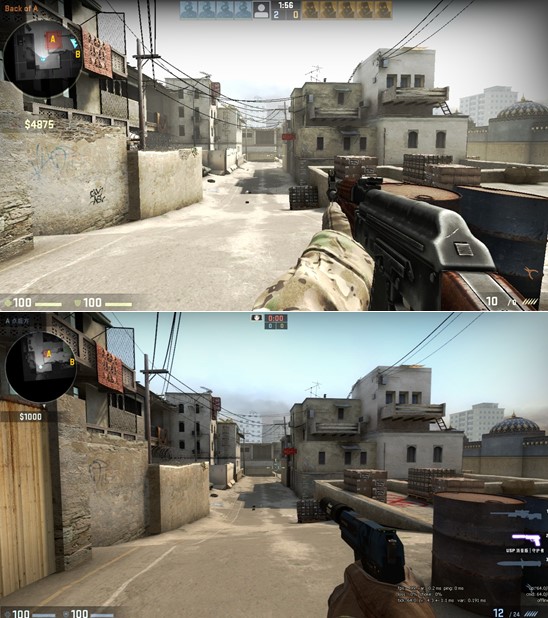 介绍了这么多,那么CS:起源在游戏里究竟是什么样子的呢?接下来让我们通过对比CS1.6和CS:GO来一探究竟吧。
