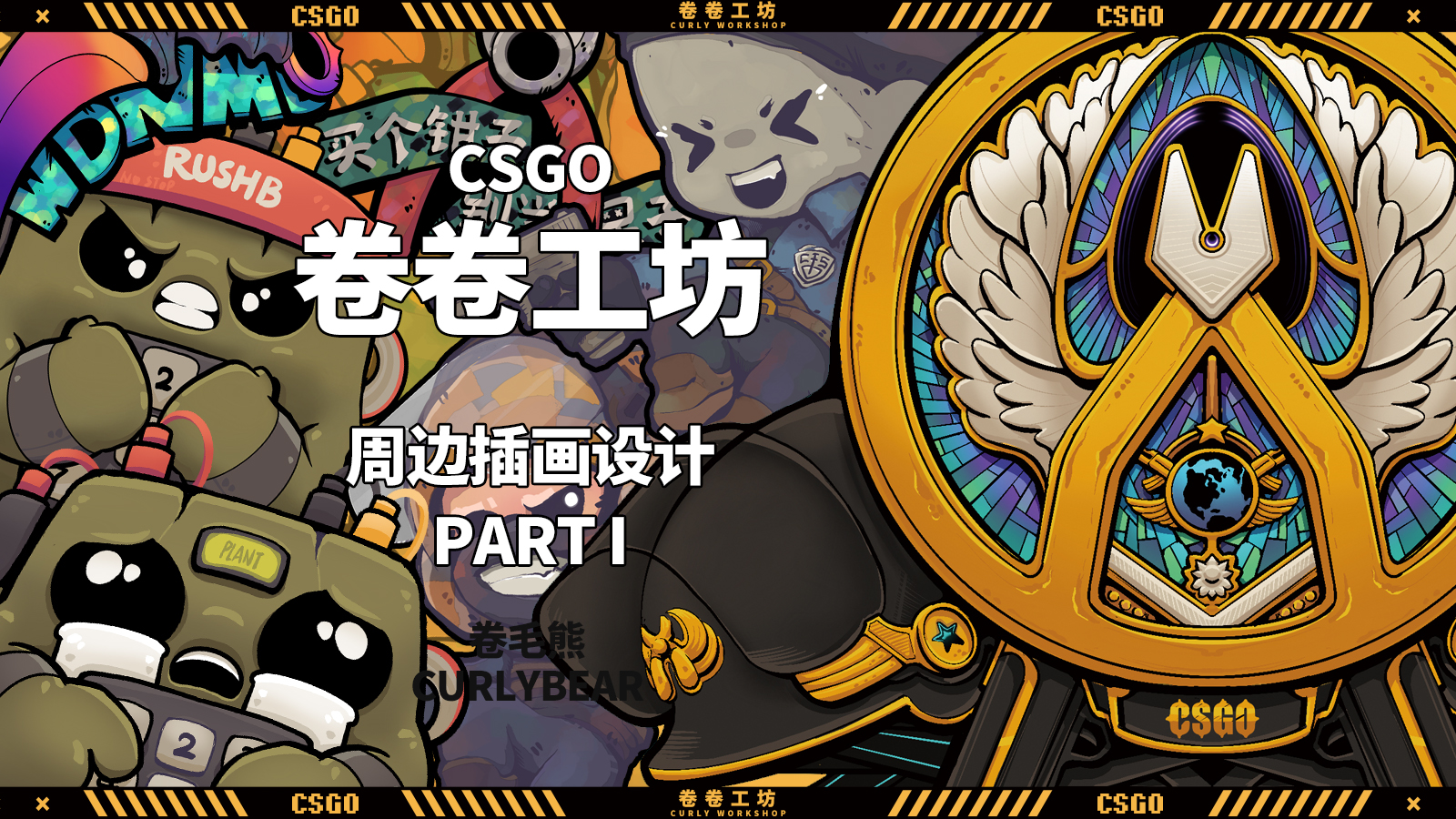嗨!我是卷毛熊。 这次我为csgo周边设计大赛专门成立了卷卷工坊!我就是坊主!本次卷卷工坊为各位铁头老哥们带来了崭新出厂的各种好货,从T恤到鼠标垫到各种周边饰品应有尽有。为了让本次设计的插画能够更加百搭,我在创作主视觉——新版守护之钳的同时,还配套绘制了大量阔阔爱爱的小印花,有了这些印花图标,老哥们还怕自己的衣服不够骚?考虑到CSGO不但有铁头老哥哥,还有许多铁头小姐姐,那就必须整点花活了!卷卷工坊本次的图案设计比以往的任何时候都更加活蹦乱跳,无论你是全甲大沙鹰的老哥哥,还是轻盈如鸟狙的小姐姐,大家都能在卷卷工坊找到心仪的款式!CHOP CHOP! 最后,据说点赞投票的老哥老姐们开箱都出刀喔。嘻嘻哈哈!