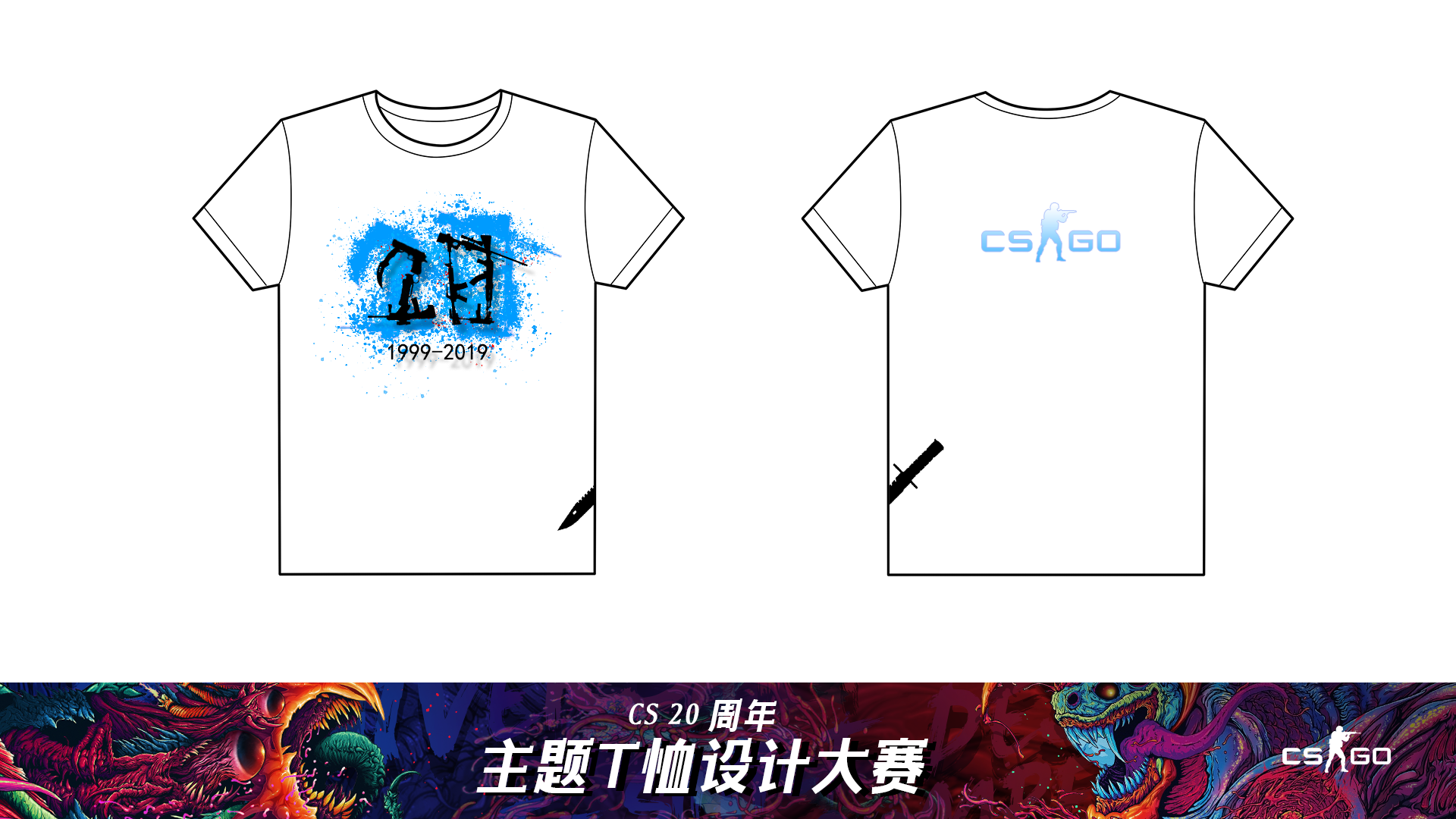 蓝色的涂鸦夏天会显得格外的凉爽,用枪摆成20的造型纪念cs20周年。 背面用的csgo官方logo 可以醒目的看出这是csgo
